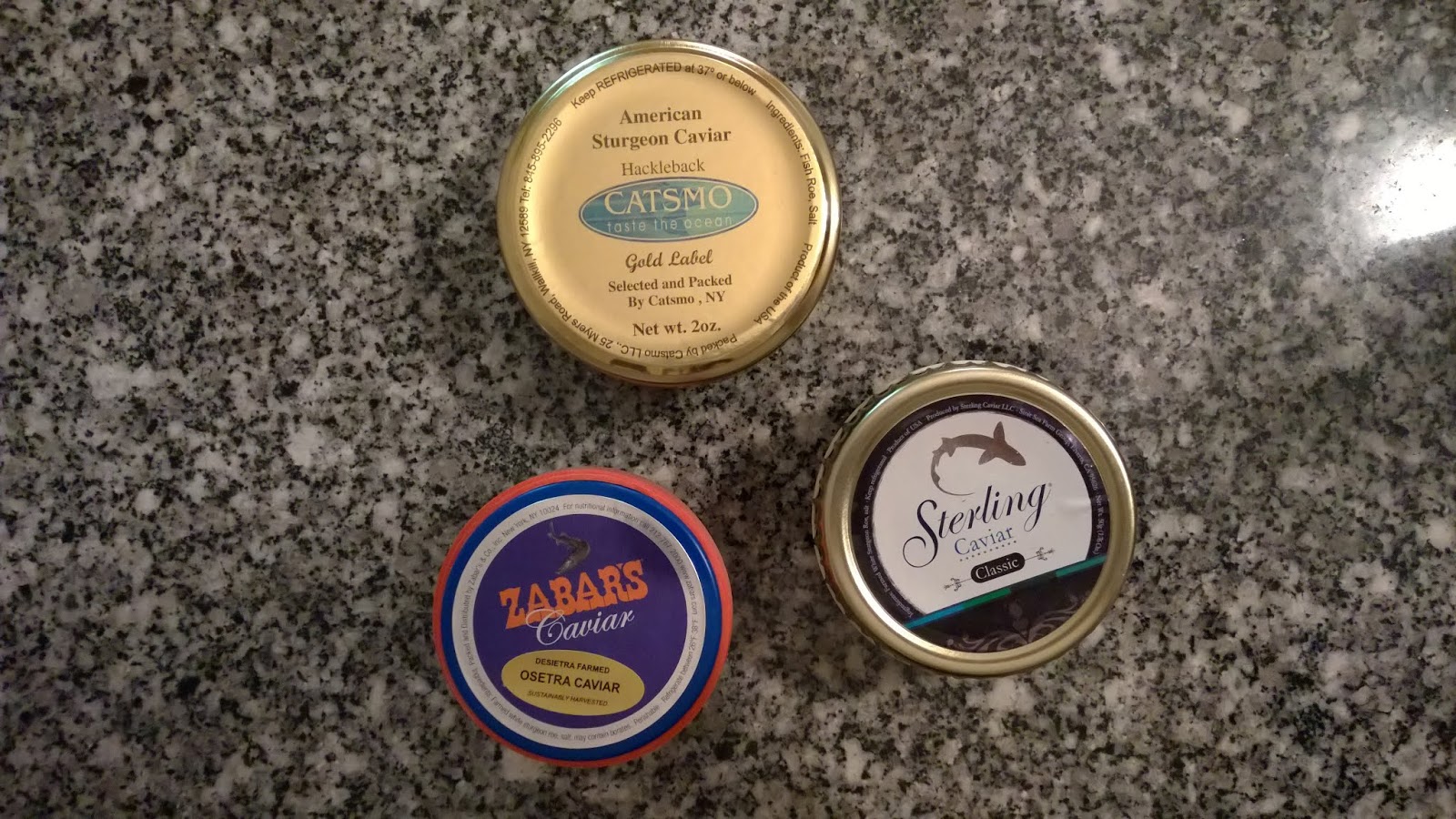 We started with caviar, the original impetus for the overall meal. Zabar's was having their big annual sale, so we were able to get three types for a reasonable price: Hackleback, Sterling, and Osetra.